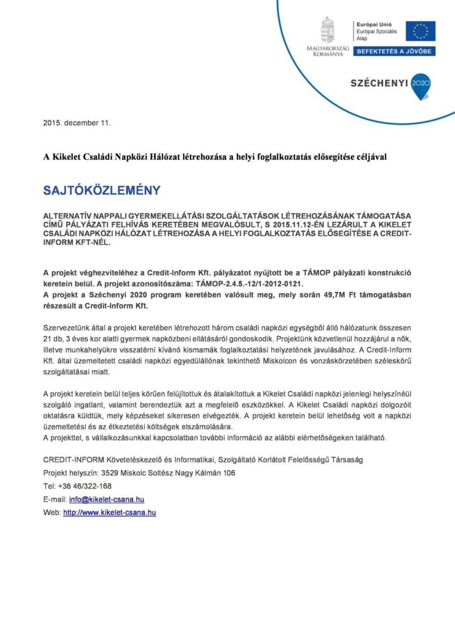 Projektzáró rendezvényünket 2015 október 17.-én tartjuk amelyre minden kedves érdeklődőt, szeretettel várunk!